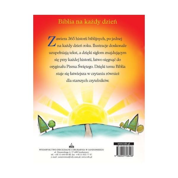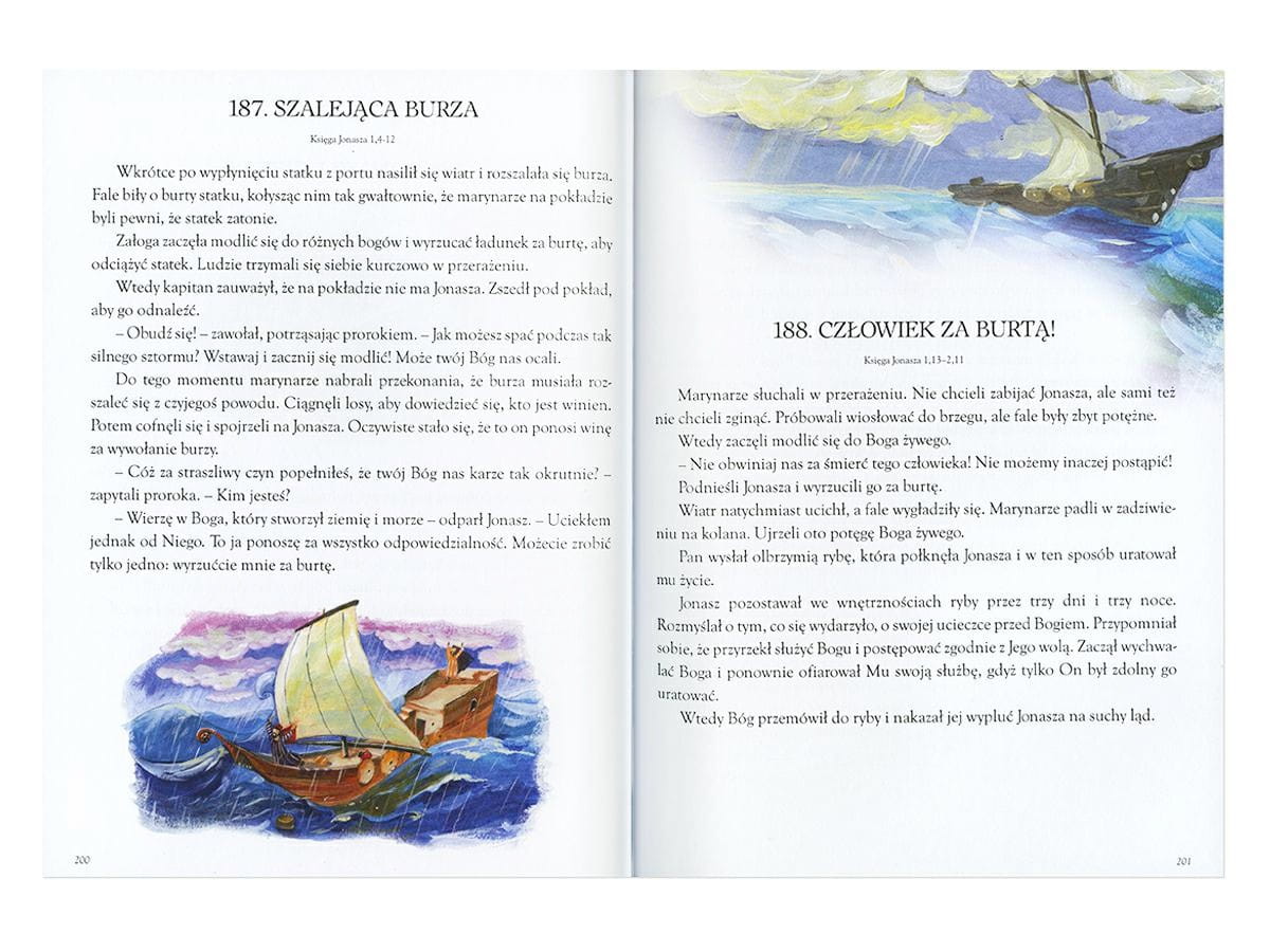 Zawiera 365 historii biblijnych, po jednej na każdy dzień roku. Ilustarcje doskonale uzupełniają tekst, a dzięki siglom znajdującym się przy każdej historii, łatwo sięgnąć do oryginału Pisma Świętego. Dzięki temu Biblia staje się łatwiejsza w czytaniu również dla starszych czytelników.