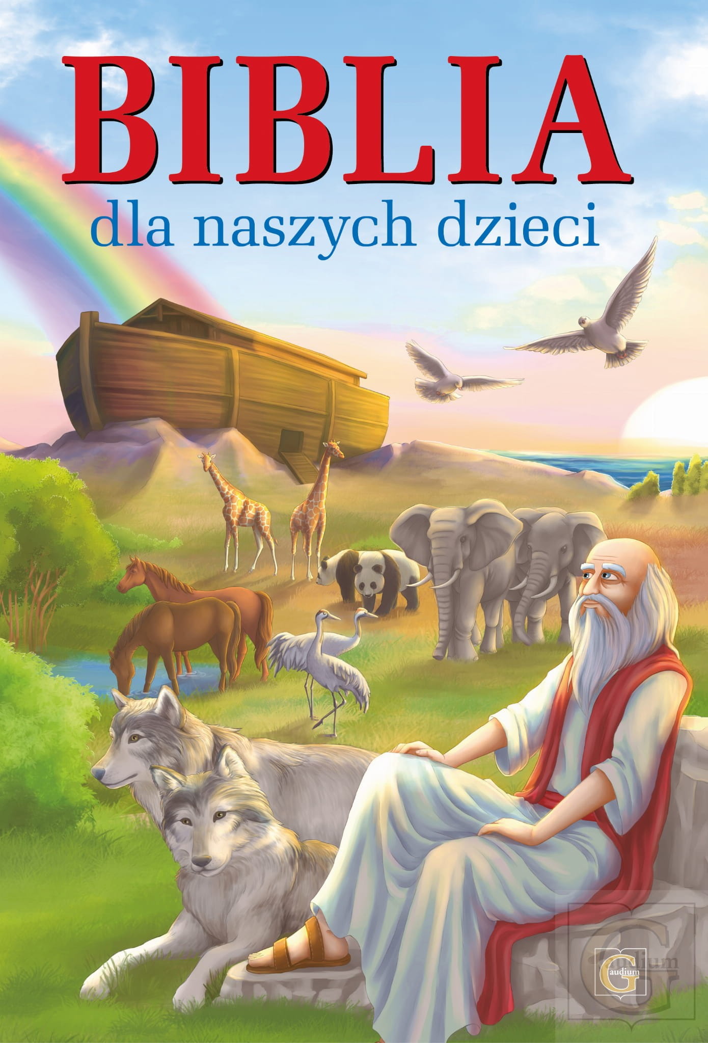 Książka Wydawnictwa „Gaudium” Biblia dla naszych dzieci w krótkich tekstach i korespondujących z nimi kolorowych ilustracjach opowiada historie biblijne ze Starego i z Nowego Testamentu. Każde opowiadanie kończy się pytaniami, które ułatwią dzieciom przyswojenie ważnych treści płynących z kart Biblii. Wspólna – dzieci i opiekunów – lektura tej publikacji to doskonała możliwość wprowadzania najmłodszych w tajemnicę wiary chrześcijańskiej.Ze względu na swą wartość dydaktyczną i katechetyczną książka stanowi doskonałą pomoc dla nauczali religii i duszpasterzy, którzy mogą ją wykorzystać do zilustrowania przedstawianych przez siebie treści związanych z Pismem Świętym.Piękne ilustracje i atrakcyjna forma wydania sprawiają, że książka sprawdzi się również jako doskonały prezent dla dzieci z okazji Pierwszej Komunii Świętej i innych uroczystości przeżywanych przez najmłodszych.