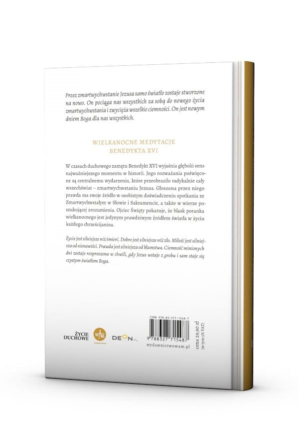 W czasach duchowego zamętu Benedykt XVI wyjaśnia głęboki sens najważniejszego momentu w historii. Jego rozważania poświęcone są centralnemu wydarzeniu, które przeobraziło radykalnie cały wszechświat – zmartwychwstaniu Jezusa. Głoszona przez niego prawda ma swoje źródło w osobistym doświadczeniu spotkania ze Zmartwychwstałym w Słowie i Sakramencie, a także w wierze poszukującej zrozumienia. Ojciec Święty pokazuje, że blask poranka wielkanocnego jest jedynym prawdziwym źródłem światła w życiu każdego chrześcijanina.