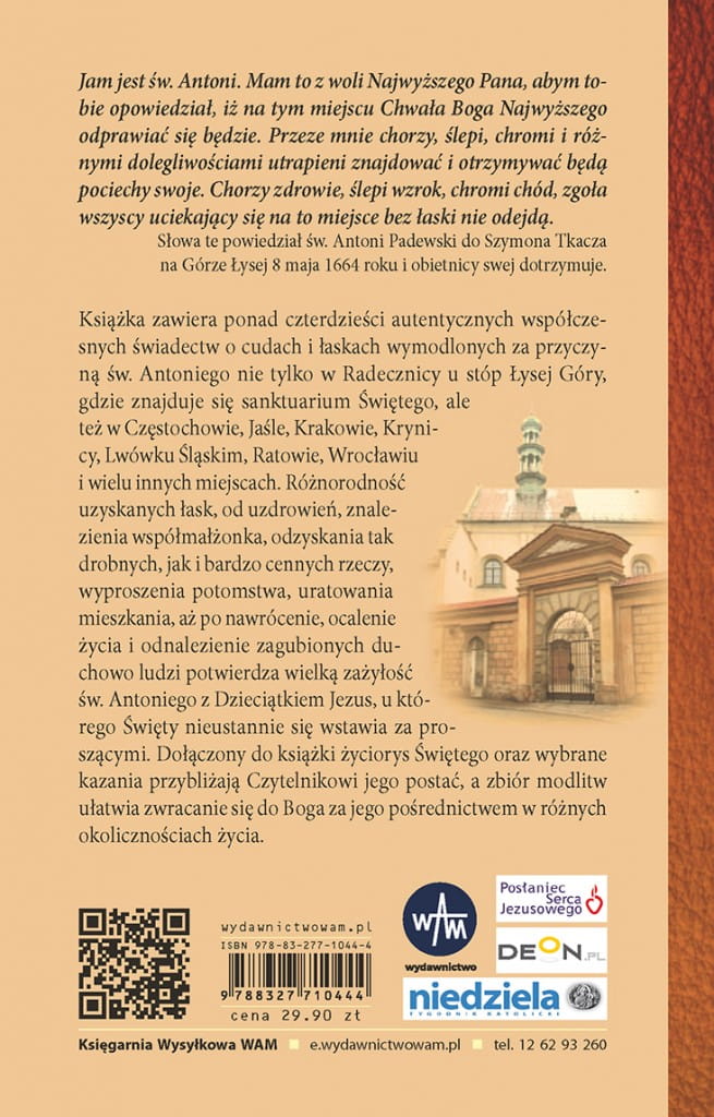 Książka zawiera ponad czterdzieści autentycznych, współczesnych, bardzo ciekawych świadectw o cudach i łaskach uzyskanych za wstawiennictwem najbardziej popularnego ze świętych - świętego Antoniego Padewskiego, napisanych przez osoby różnych stanów, zawodów i w różnym wieku. Różnorodność uzyskanych łask, od odzyskania drobnych do bardzo cennych rzeczy, uzdrowień, znalezienia współmałżonka, wyproszenie potomstwa, aż po nawrócenie, uratowanie mieszkania, ocalenie życia i odnalezienie zagubionych duchowo ludzi, świadczy o świętym Antonim, jako o świętym, który ma wielkie względy u Pana Boga. W swych wizerunkach przedstawiany jest często z Dzieciątkiem Jezus z racji wielkiej zażyłości w jakiej był z Nim za życia i teraz może wypraszać dla nas wiele łask.