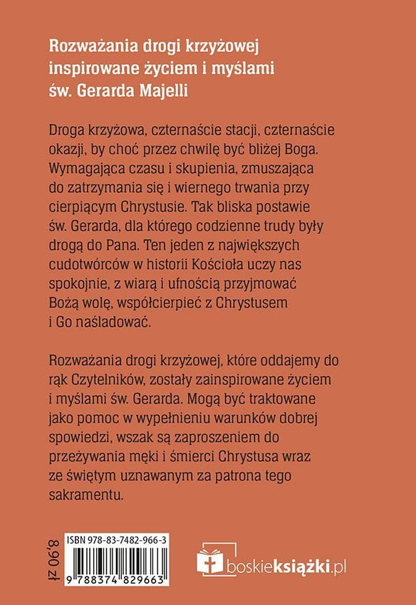 Rozważania drogi krzyżowej, które oddajemy do rąk Czytelników, zostały zainspirowane życiem i myślami św. Gerarda. Mogą być traktowane jako pomoc w wypełnieniu warunków dobrej pokuty, wszak są zaproszeniem do przeżywania męki i śmierci Chrystusa wraz ze świętym uznawanym za patrona dobrej spowiedzi.