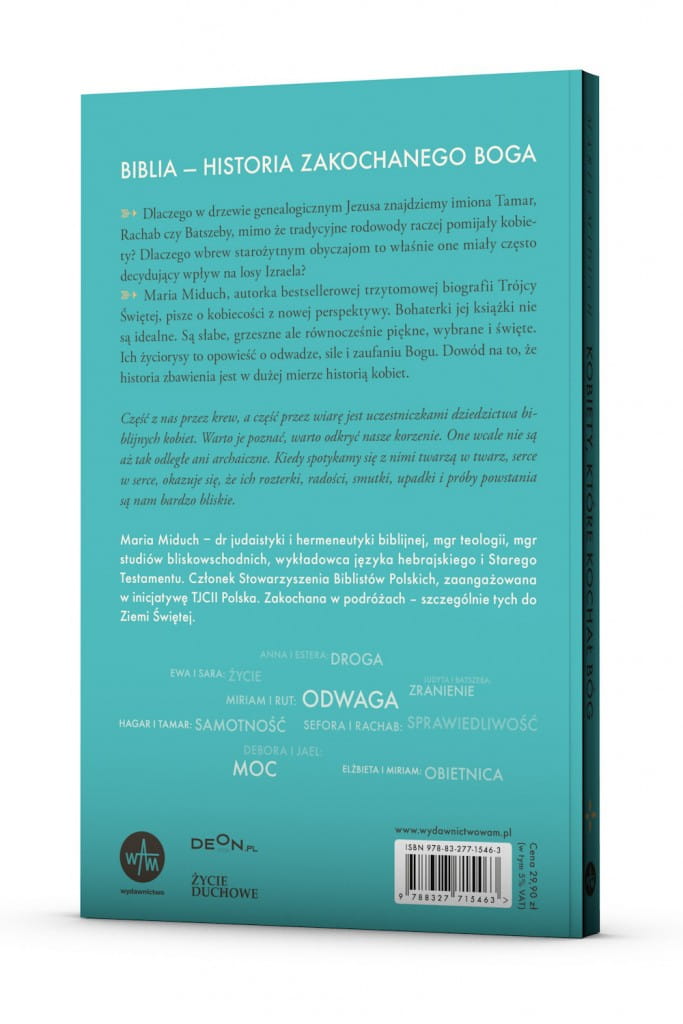 Maria Miduch, autorka bestsellerowej trzytomowej biografii Trójcy Świętej, pisze o kobiecości z nowej perspektywy. Bohaterki jej książki nie są idealne, są słabe, grzeszne ale równocześnie piękne, wybrane i święte. Ich życiorysy są opowieścią o odwadze, sile i zaufaniu Bogu. Dowodem na to, że historia zbawienia jest w dużej mierze historią kobiet.