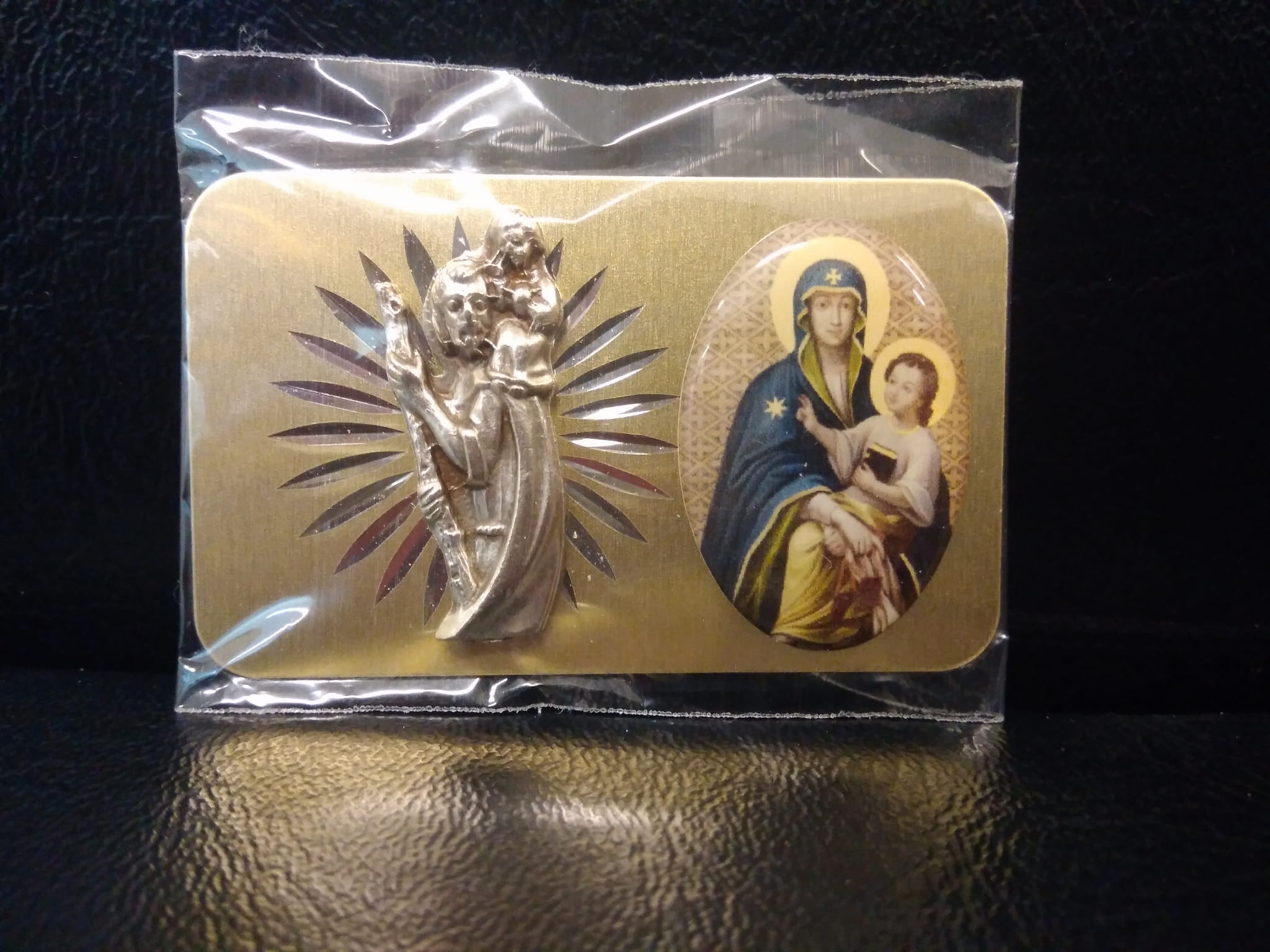 Plakietka do samochodu ze św. Krzysztofem i Matką Bożą Szkaplerzną.