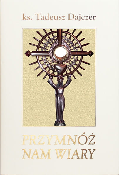 „Przymnóż nam wiary”, to trzecia książka księdza profesora Tadeusza Dajczera, z tryptyku poświęconego Najświętszej Eucharystii, ale po jej lekturze nabiera się przekonania, że Autor mógłby tych książek napisać więcej. On właściwie mógłby je pisać nieustannie, jako, że nieustannie żyje Eucharystią, jest Nią zafascynowany, wprost zakochany i nie może nie mówić o tej wielkiej Miłości, skoro odkrył, że Bóg zakochał się w człowieku i to aż do całkowitego oddania się w Najświętszej Eucharystii, będącej żywą Tajemicą Zmartwychwstałego Chrystusa. A jednak w relacji do tej Tajeninicy najodpowiedniejszą reakcją wydaje się prośba: „Przymnóż nam wiary!”. I Autor, na wzór Pana, uczy wiary, każe o nią zabiegać jak o skarb najcenniejszy, bo wiara człowieka dojrzałego, to widzieć działanie Boga wszędzie, przeżywać Jego obecność jako bardziej realną niż rzeczywistość, w której się poruszamy. Do takiej wiary trzeba dorastać, uczyć się jej tak, jak uczyli się apostołowie.