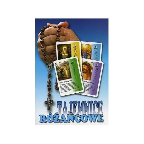 Tajemnice różańcowe w formie praktycznych kart, trwałe i eleganckie są pomocą w modlitwie różańcowej w każdej sytuacji. Poszczególne tajemnice różnią się kolorami, dzięki czemu łatwo je skompletować, gdy się niechcący przemieszają.