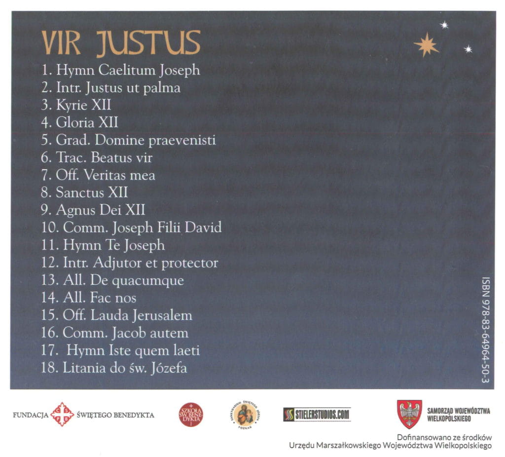Płyta z chorałem gregoriańskim poświęcona św. Józefowi “Vir Justus” (Mąż sprawiedliwy)!