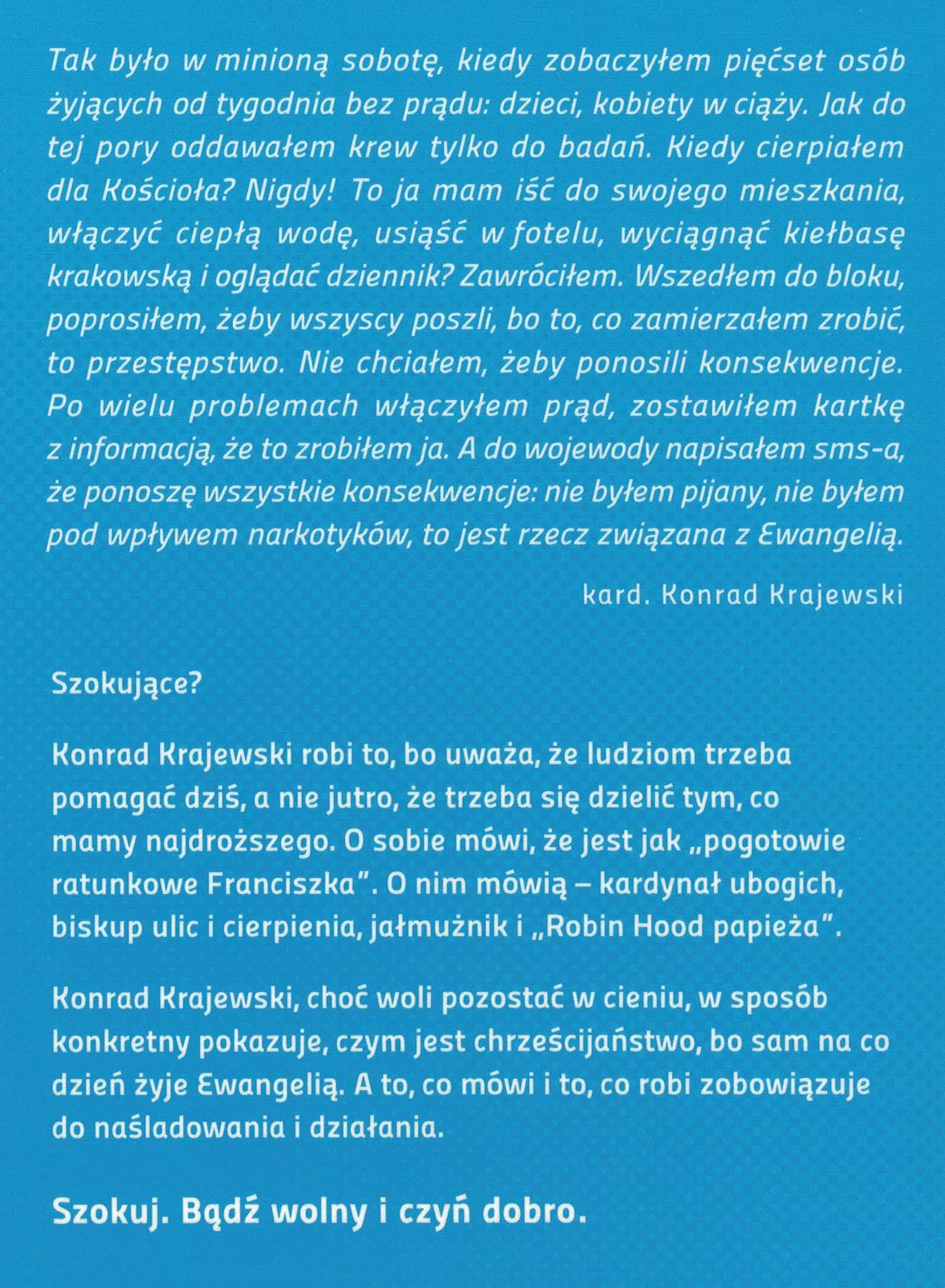 Konrad Krajewski, choć woli pozostać w cieniu, w sposób konkretny pokazuje, czym jest chrześcijaństwo, bo sam na co dzień żyje Ewangelią. A to, co mówi i to, co robi zobowiązuje do naśladowania i działania.